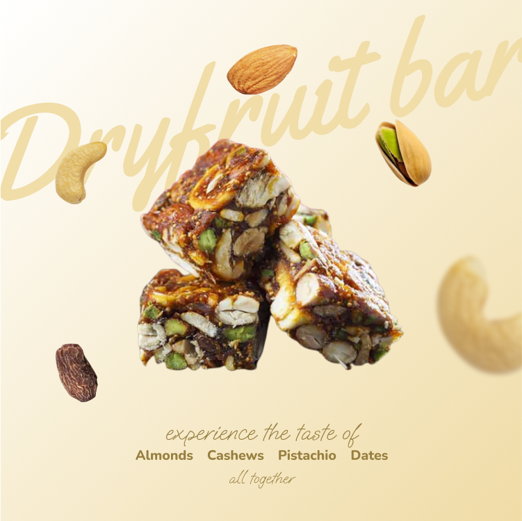 Indulge in our premium dryfruit bars, made with the finest ingredients including cashews, almonds, dates, and pistachios.