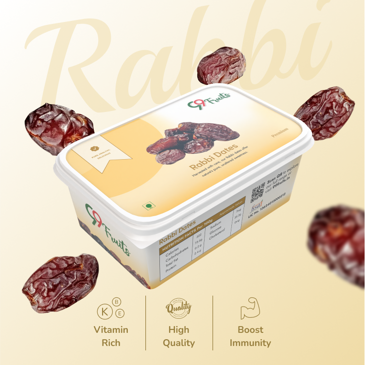- Nutrient-Rich: Rabbi Dates are packed with essential vitamins and minerals like potassium, magnesium, and B vitamins, supporting overall health.