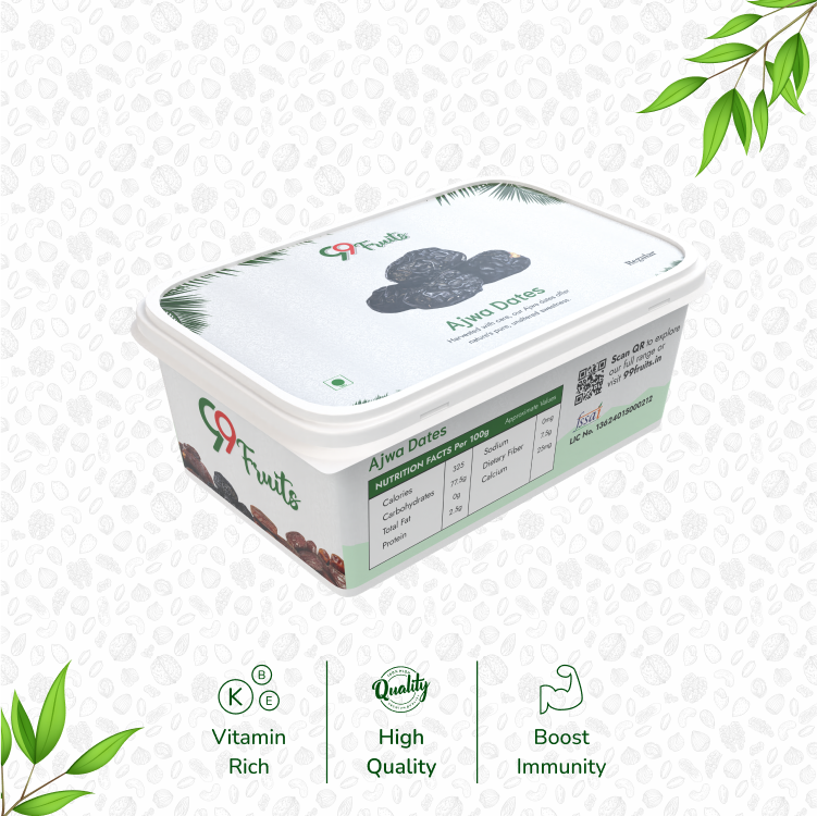 - Nutrient-Rich: Ajwa dates are packed with essential vitamins A, B, and K, including high dietary fiber.