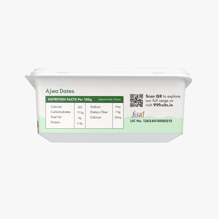 - Ajwa dates are a nutrient-dense, tasty snack packed in 99 fruits regular package.