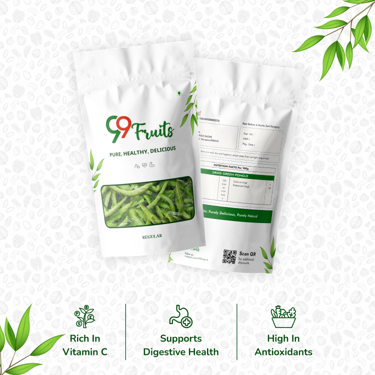 - Dried Pomelo Green: A nutrient-dense tasty snack packed in 99 Fruits' regular package.