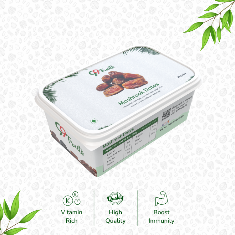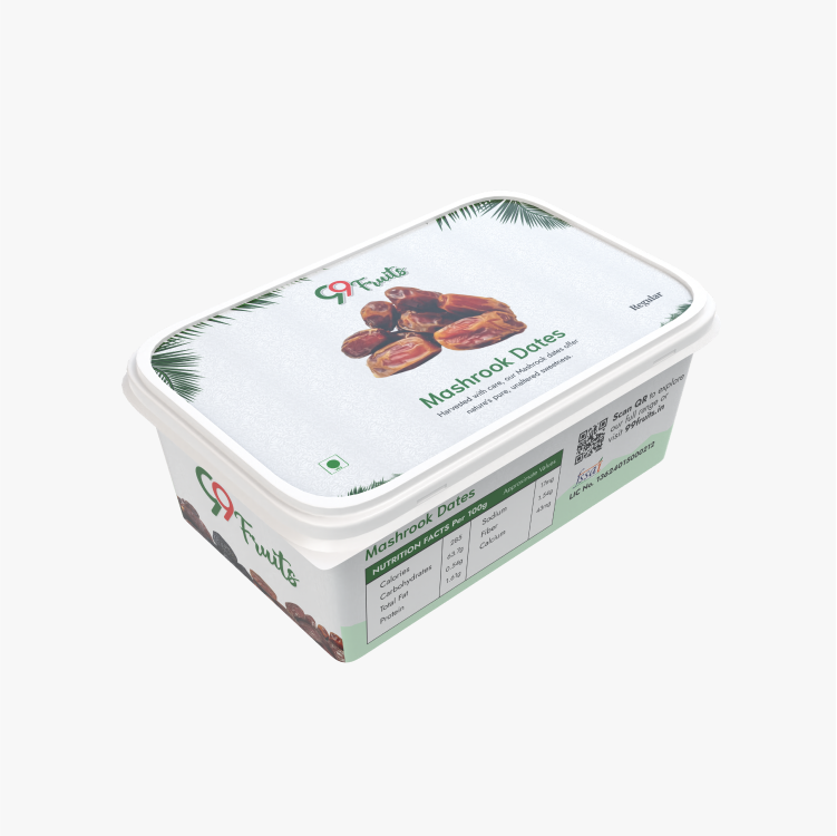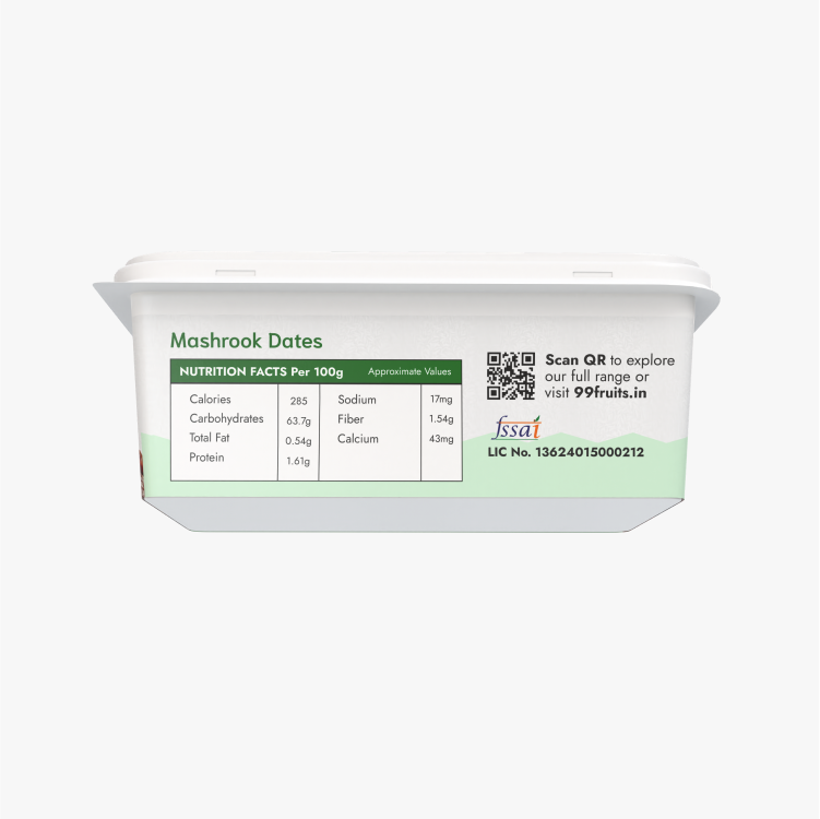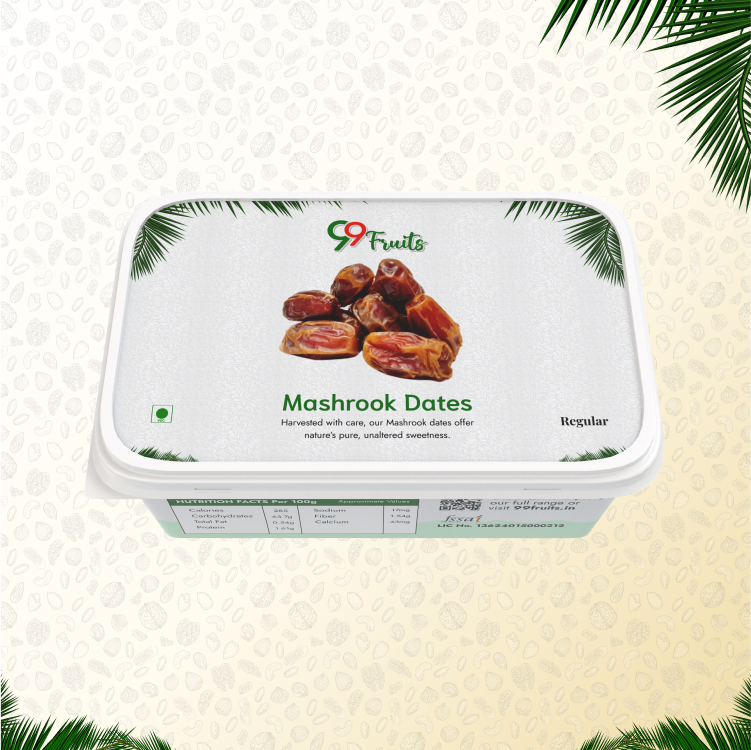 - Mashrook dates are usually a tough, shiny, sweet, tasty snack packed in 99 fruits regular package.